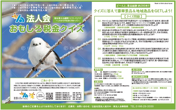 このたび旭川・富良野・名寄・稚内の5法人会では、国税庁の「税を考える週間」にあわせて、地域の皆さまを対象